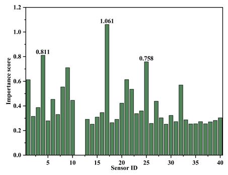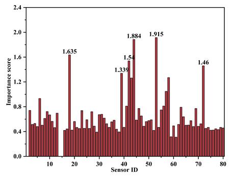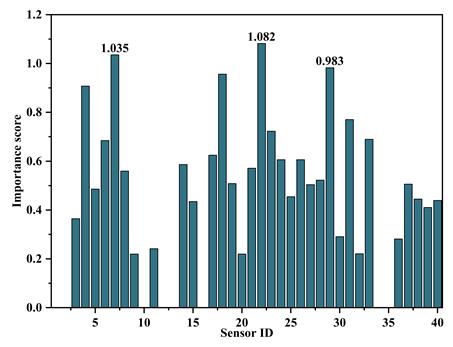 图3.基于mRMR算法对三个数据集的传感器重要性排序结果